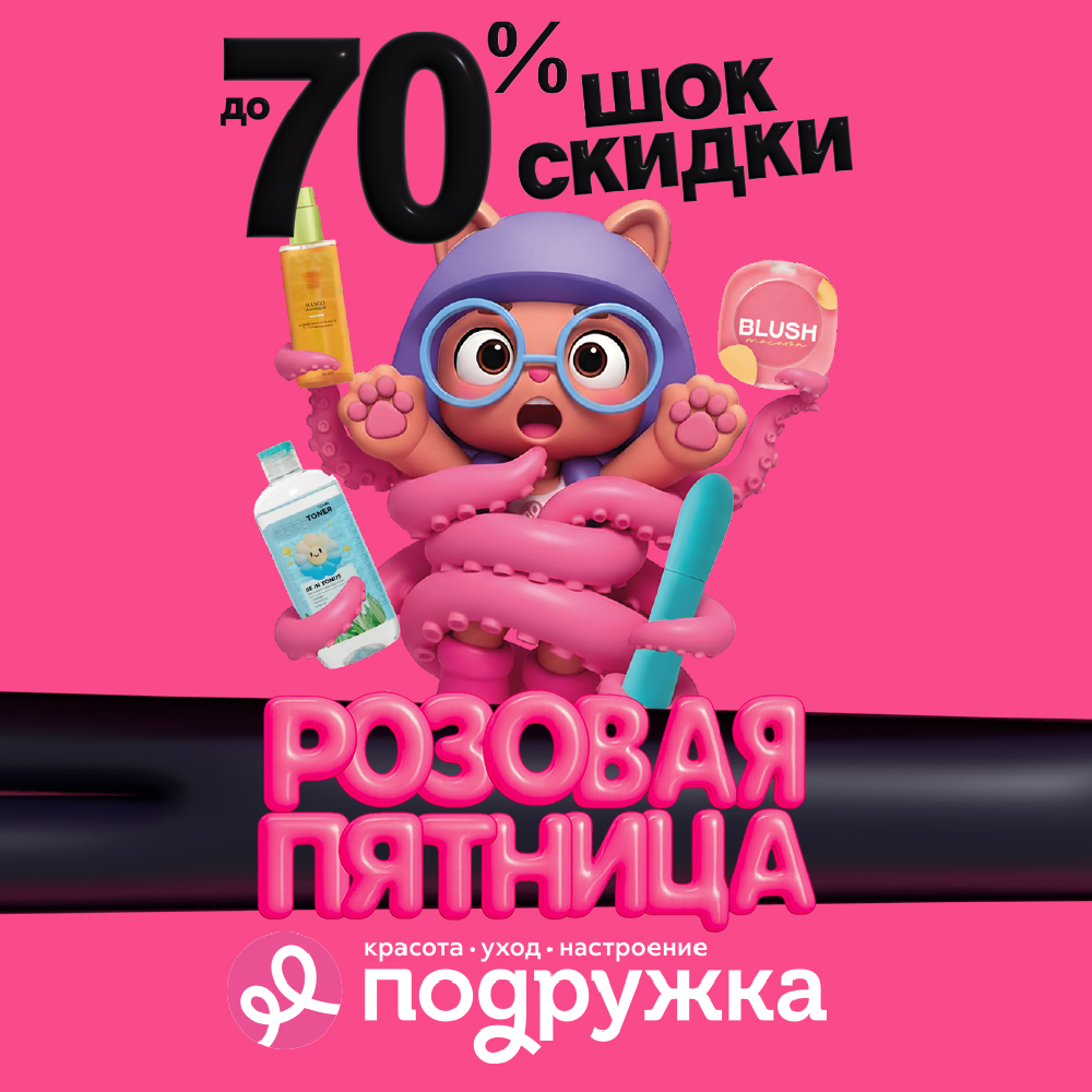 Только с 10 ноября до 1 декабря выбирай уходовые средства, эксклюзивную декоративную косметику с розовыми ценниками и покупай топовые товары по приятным ценам. Акция действует только для владельцев дисконтной карты «Подружка». Скидка не суммируется с другими акциями сети. Подробности уточняй на www.podrygka.ru или у продавцов-консультантов.