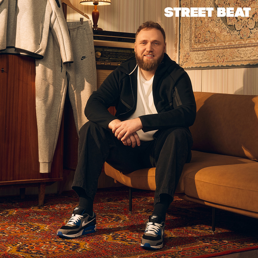 Классические силуэты Nike — основа образа многих жителей городов, которая не теряет актуальность с годами. На Илье костюм Nike Tech Fleece из 2010-х, который занял достойное место в классической линейке бренда. В кадре — знаковые кроссовки Nike Air Force 1, разработанные в восьмидесятых и Nike Air Max 90, которые были выпущены в самом начале девяностых.