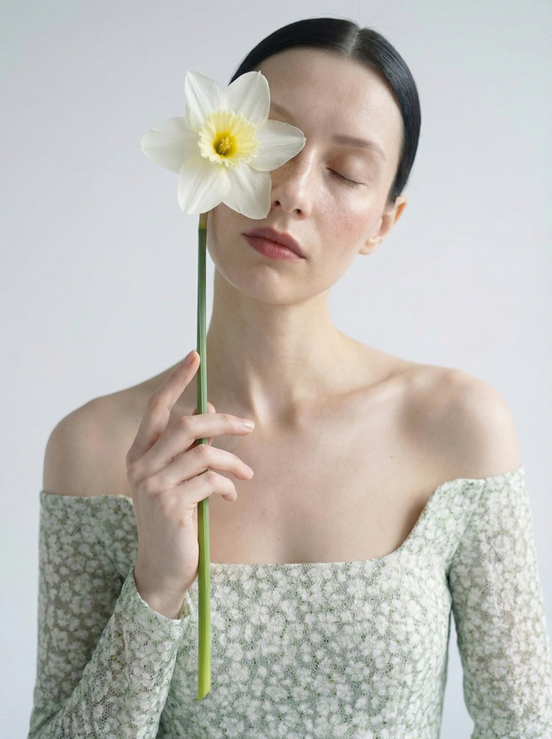 В центре внимания — авторские принты, где каждый рисунок уникален и будто рассказывает свою историю обновления — от едва заметного пробуждения природы до взрывного буйства цветения. Мягкие и чистые белые и голубые тона, плавно перетекая друг в друга, словно рассекают хрупкие облака на весеннем небе и наполняют все вокруг нежной, воздушной прозрачностью. Лаконичные силуэты, объединяющие невесомый шифон и структурный твид, подчеркивают природную грацию своей обладательницы, даря свободу и легкость движений, при этом сохраняя благородную сдержанность и элегантность. Коллекция призывает наполниться светом, принять перемены и шагнуть в новый сезон с легким сердцем и ясным взглядом. Юбка и топ LIKA вдохновлены нежностью распускающихся садов и акварельной дымкой цветущих ветвей. Жемчужная ткань украшена мягким цветочным принтом в приглушенных серо-голубых тонах, напоминая старинные ботанические зарисовки на шелке. Открытые плечи, архитектурная баска и статная длинная юбка, удлиняющая силуэт и придающая торжественность, создают образ для тех моментов, когда хочется быть не просто нарядной, а по-настоящему изящной.