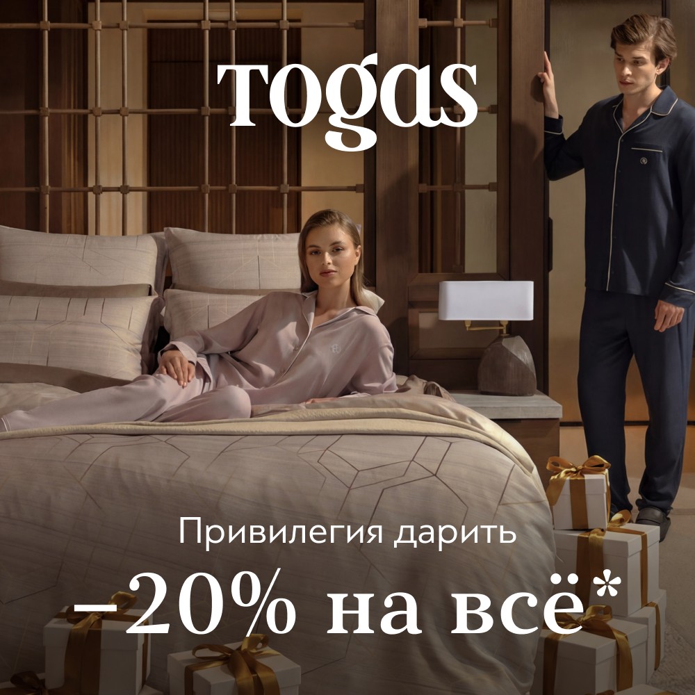 Акция действует во всех бутиках Togas и онлайн на сайте, не суммируется с другими акциями и предложениями.