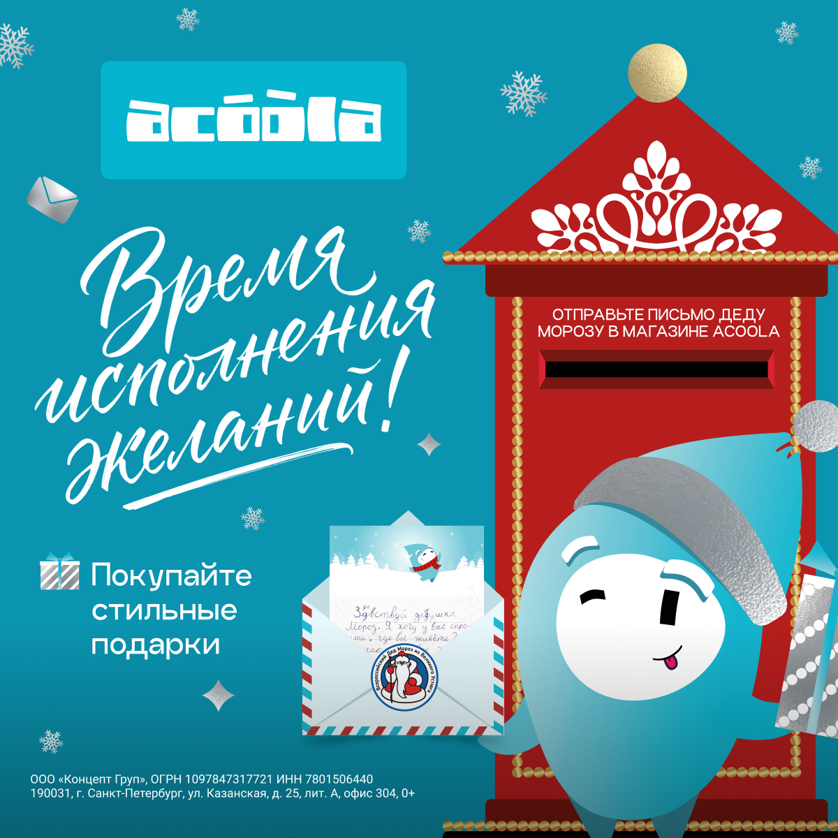 К Новому году мы также запускаем большой праздничный розыгрыш подарков от ACOOLA и Тематического парка «Дед Мороз».