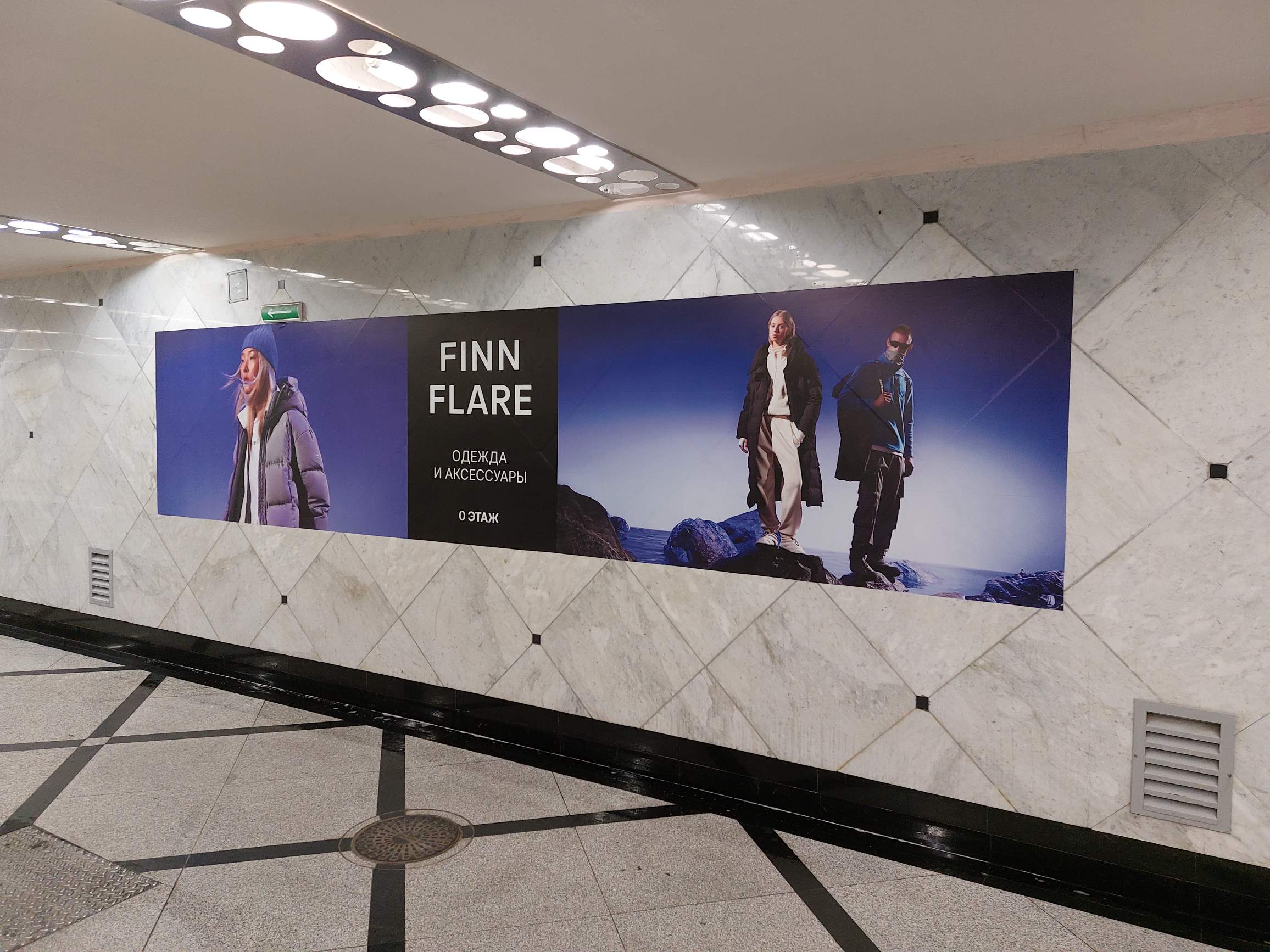 Рекламное иображение размещается на стене напротив траволатора, вдоль перехода от метро в ТЦ, всего 9 мест, продается по одному, размер 5*1,1м. По трафику самый популярный вход в ТЦ, часть поднимается с метро, часть с переходного перехода с других улиц перекрестка 8 Марта-Радищева.